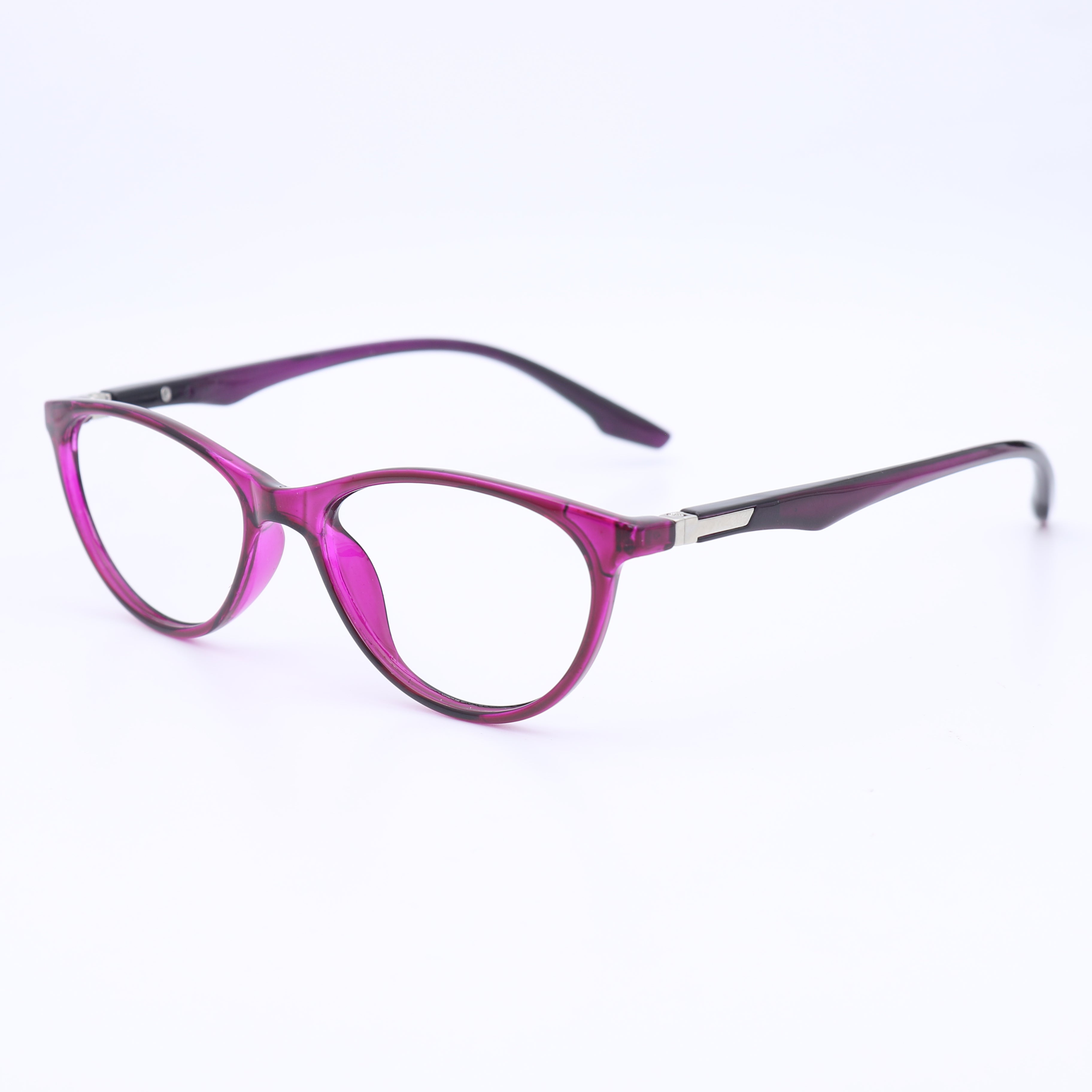 The Hycross 56 frames feature an elegant cateye silhouette with an extra narrow fit designed specifically for women with smaller face proportions. These frames offer a graceful upswept design that creates a flattering lift effect and vintage-inspired charm. The lightweight TR material ensures comfort throughout the day without sacrificing style. These frames particularly complement round, square, and oval face shapes, adding definition and creating an elegant contrast that enhances feminine features.