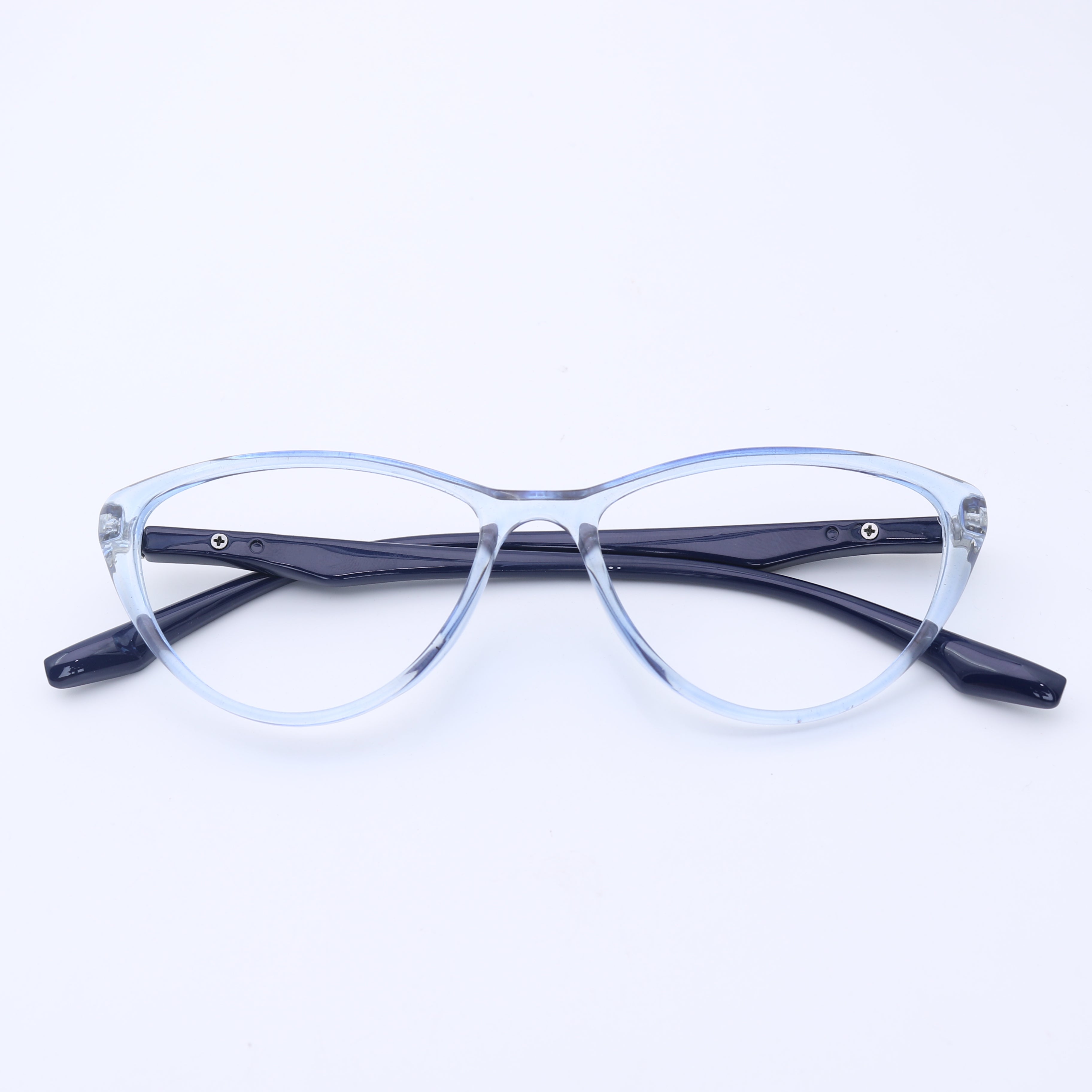 The Hycross 80 frames feature an elegant cateye silhouette with an extra narrow fit designed specifically for women with smaller face proportions. These frames offer a graceful upswept design that creates a flattering lift effect and vintage-inspired charm. The lightweight TR material ensures comfort without sacrificing style. These frames particularly complement round, square, and oval face shapes, adding definition and creating an elegant contrast that enhances feminine features while fitting perfectly on smaller faces.