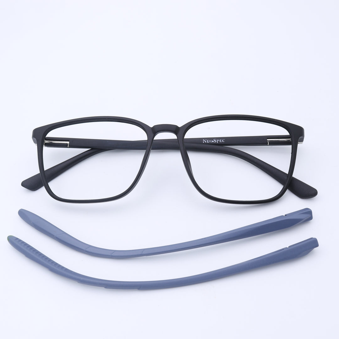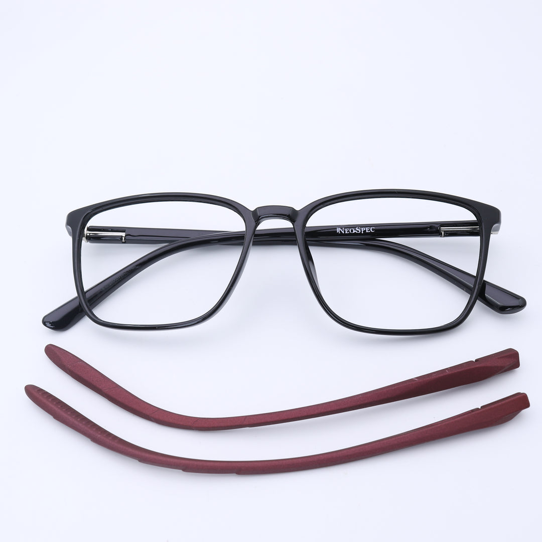 This contemporary square frame is a fantastic fit for softening round facial features. Beyond its flattering shape, it offers functional innovation with temples that can be changed in a heartbeat. We include an extra temple, empowering you to create a distinct look for every occasion.