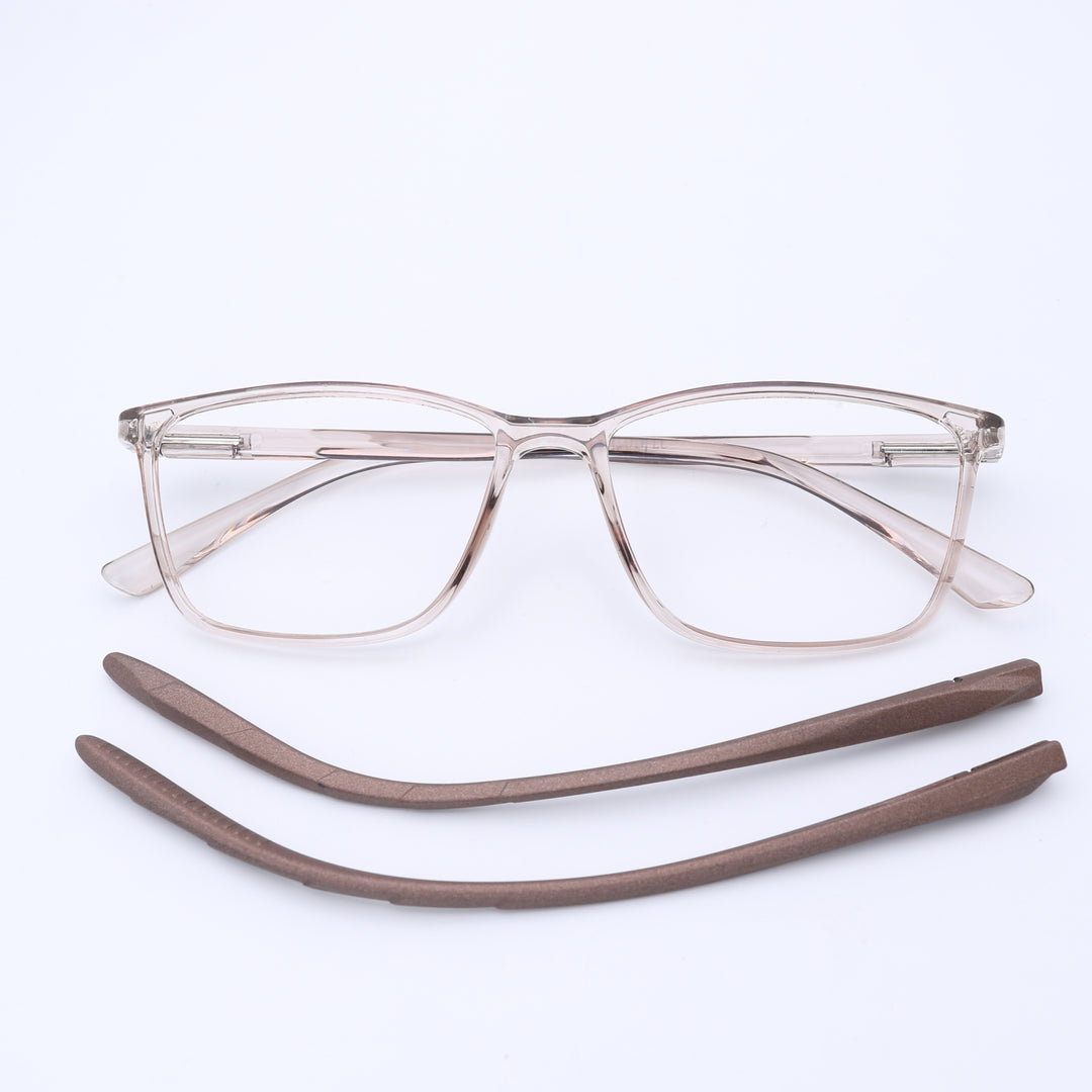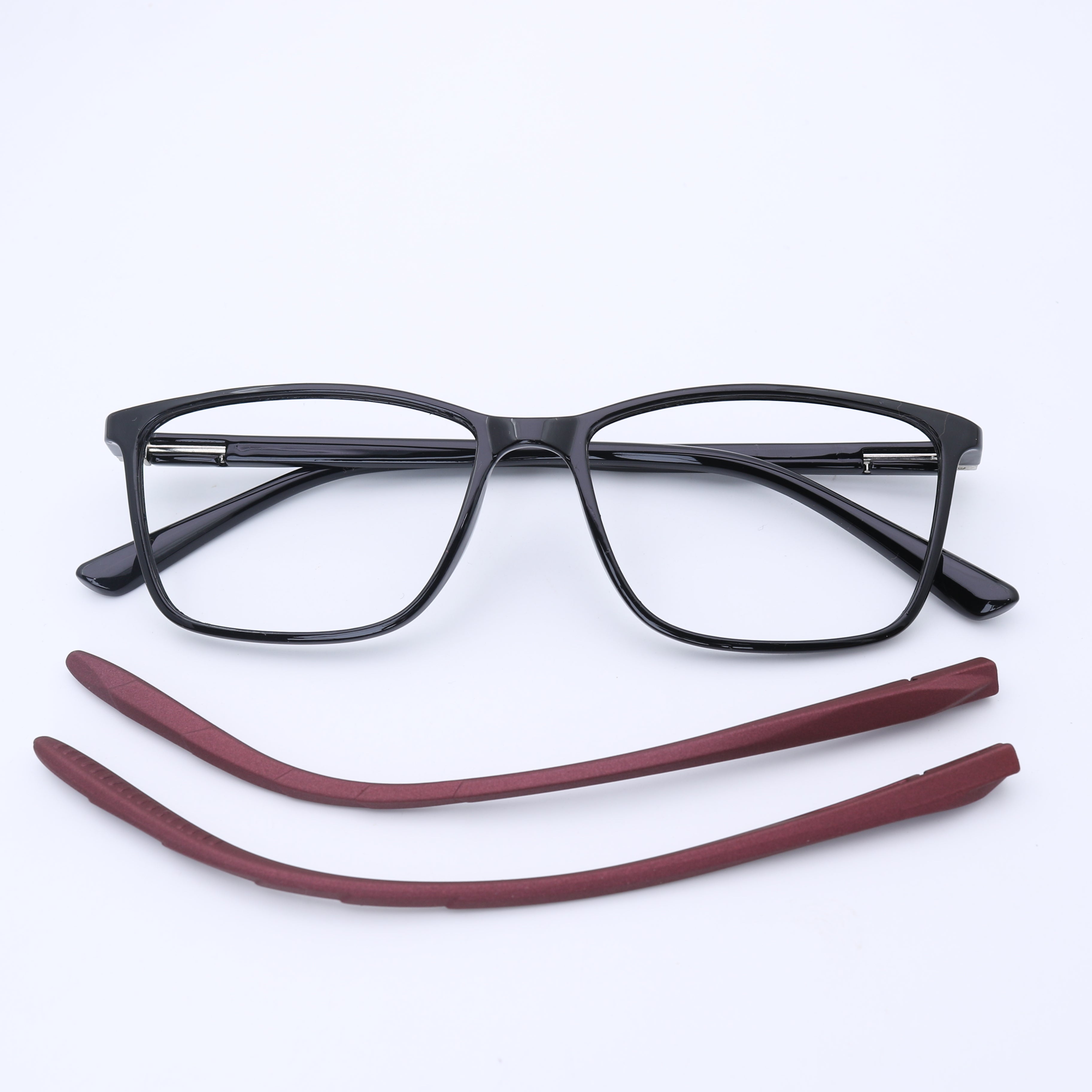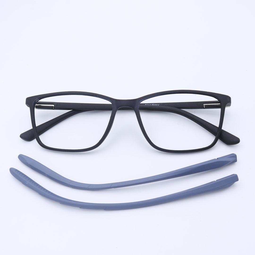 This versatile square frame is a perfect match for round and oval face shapes, offering a bold, modern look. It features a dual innovation: magnetic clip-on sun lenses AND easily interchangeable temples. An extra temple is included alongside the sun clips, making it the ultimate all-in-one, customizable eyewear solution for the modern user.
