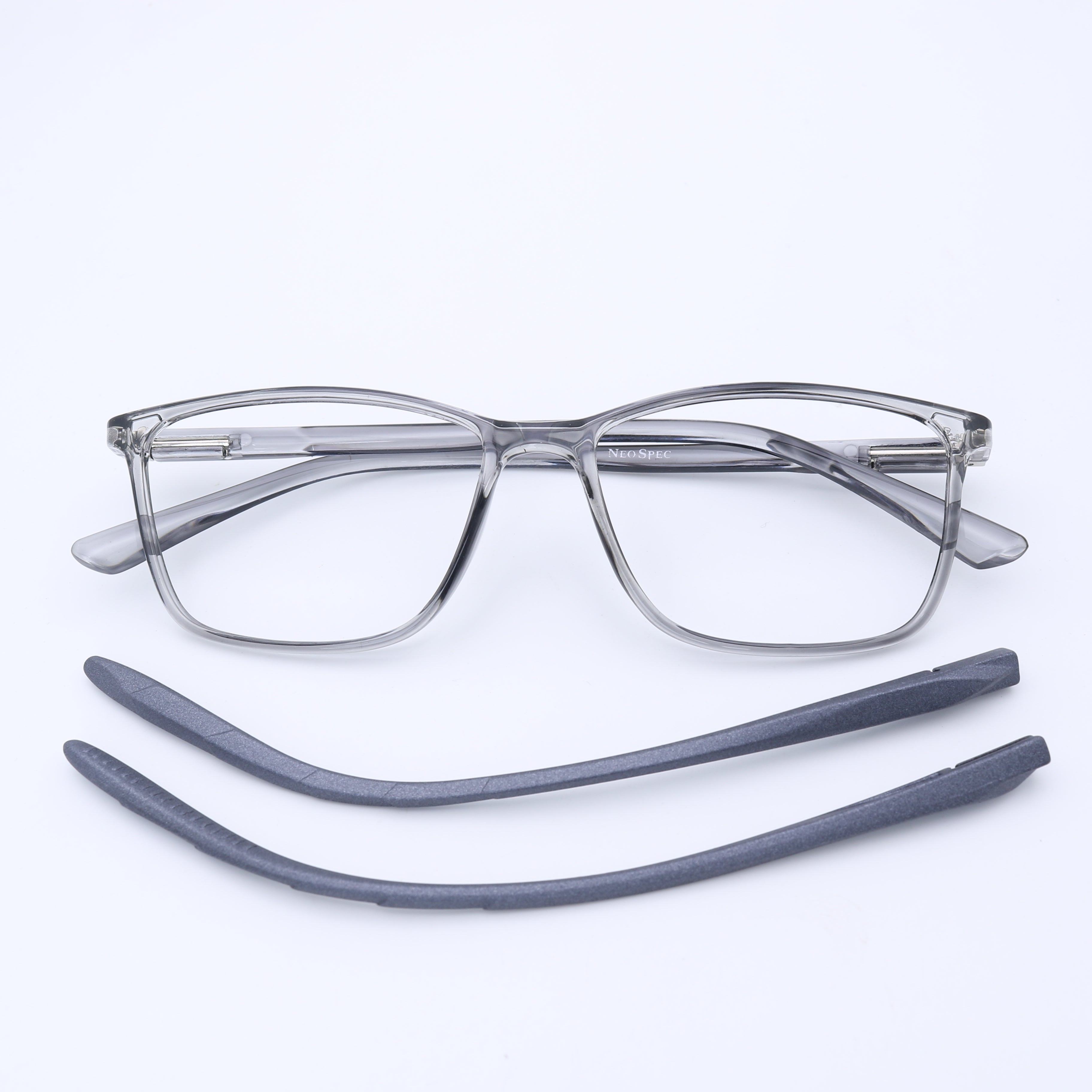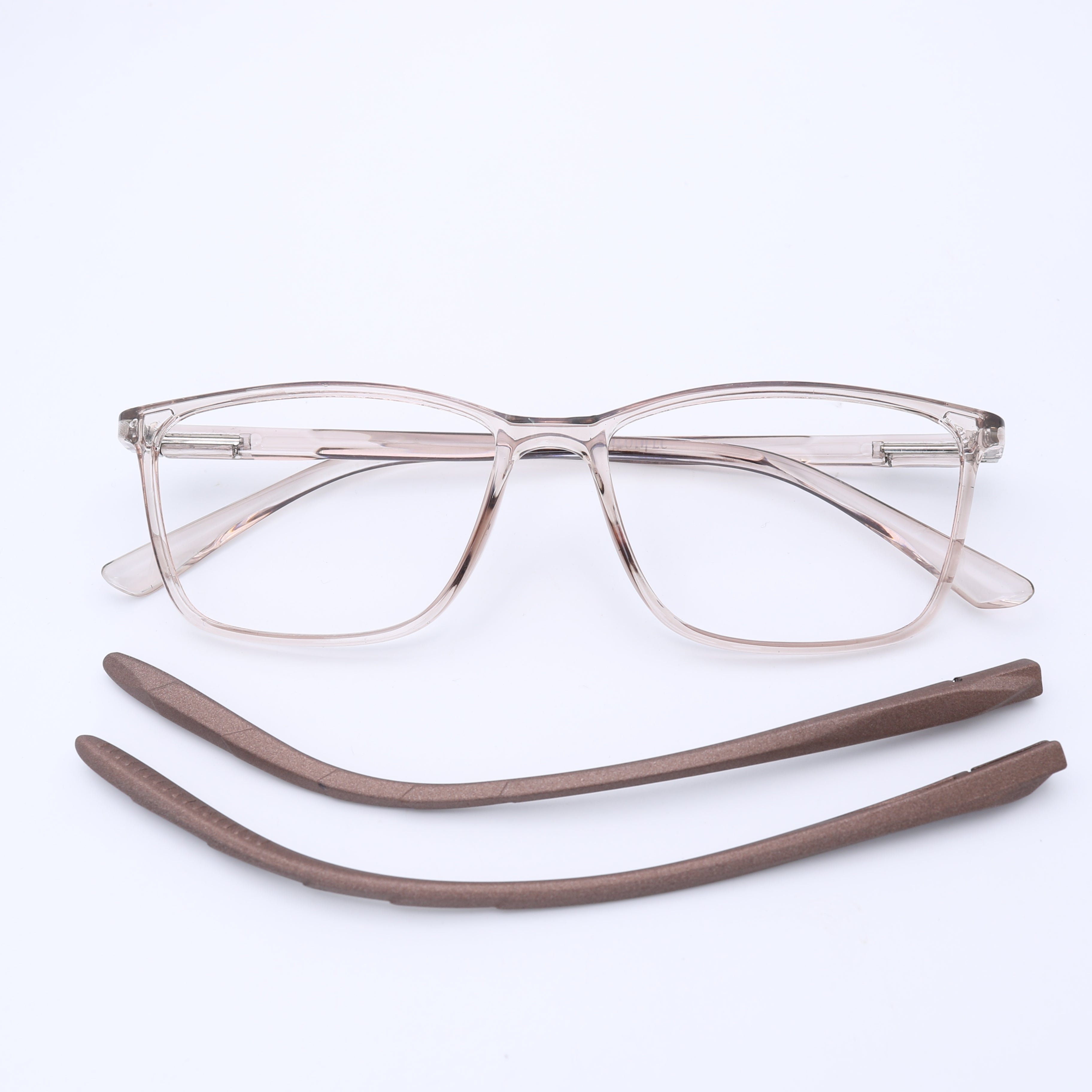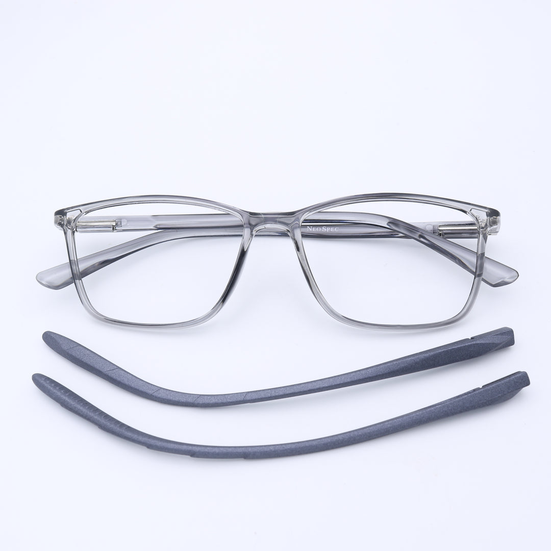 This versatile square frame is a perfect match for round and oval face shapes, offering a bold, modern look. It features a dual innovation: magnetic clip-on sun lenses AND easily interchangeable temples. An extra temple is included alongside the sun clips, making it the ultimate all-in-one, customizable eyewear solution for the modern user.